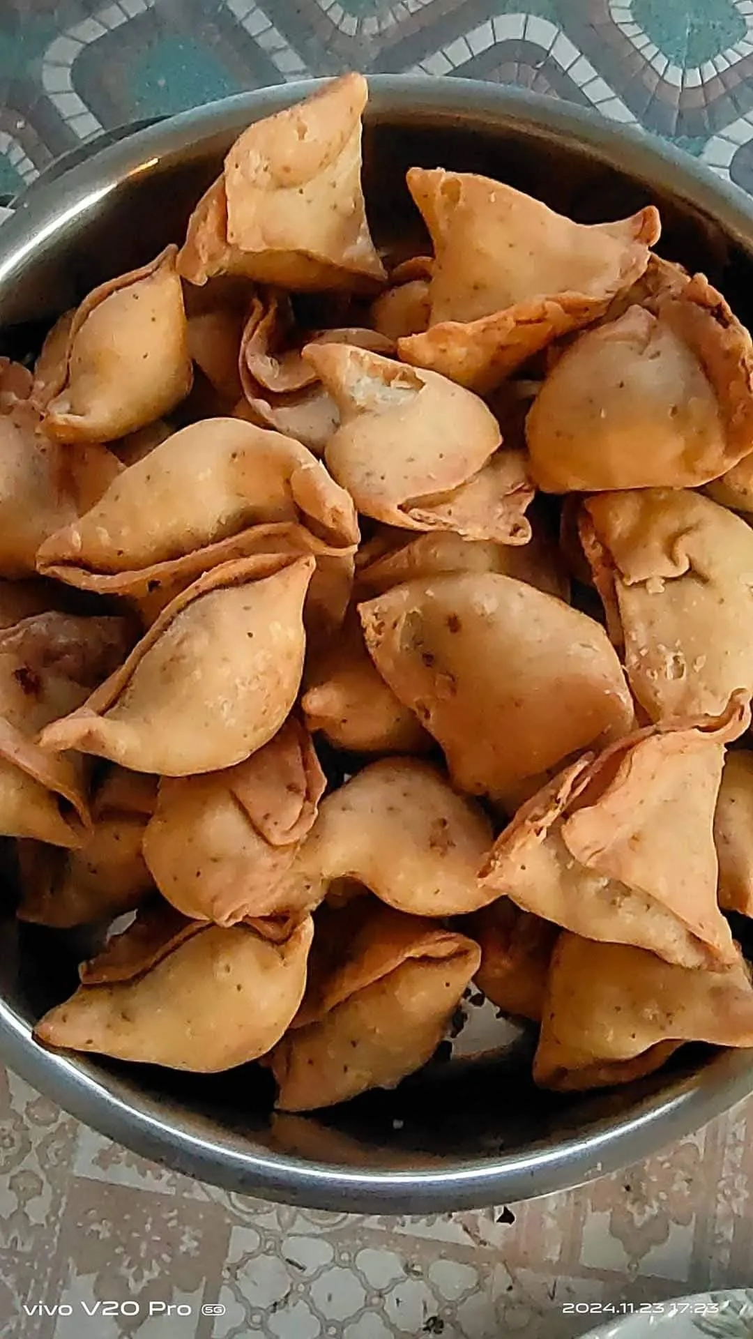 खासियत: बड़ा आकार और परतदार, कुरकुरा बाहरी आवरण। इसे अक्सर इमली की चटनी और हरी चटनी के साथ परोसा जाता है।