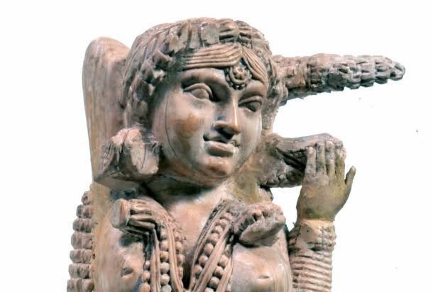 Initially, scholars such as Amadeo Maiuri, who discovered the piece, and art historian Mirella Levi D’Ancona, speculated that the figure represented a goddess, possibly Lakshmi from Hindu tradition. However, later studies reinterpreted the iconography, identifying the central figure as a yakshi—a female fertility spirit common in early Buddhist art from sites like Bharhut and Sanchi in India. Similarities in pose, adornment, and symbolic meaning align the statuette with these Indian artistic traditions, where yakshis were associated with protection, prosperity, and good fortune.