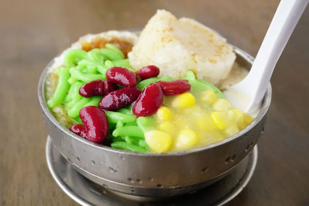 A must-try dessert to beat the heat. Cendol is a sweet treat made with shaved ice, green rice-flour jelly noodles, coconut milk, and palm sugar syrup, often with red beans and sweet corn. Ais Kacang (ABC) is its more elaborate cousin, topped with additional syrups, evaporated milk, and various toppings like grass jelly and attap seeds.